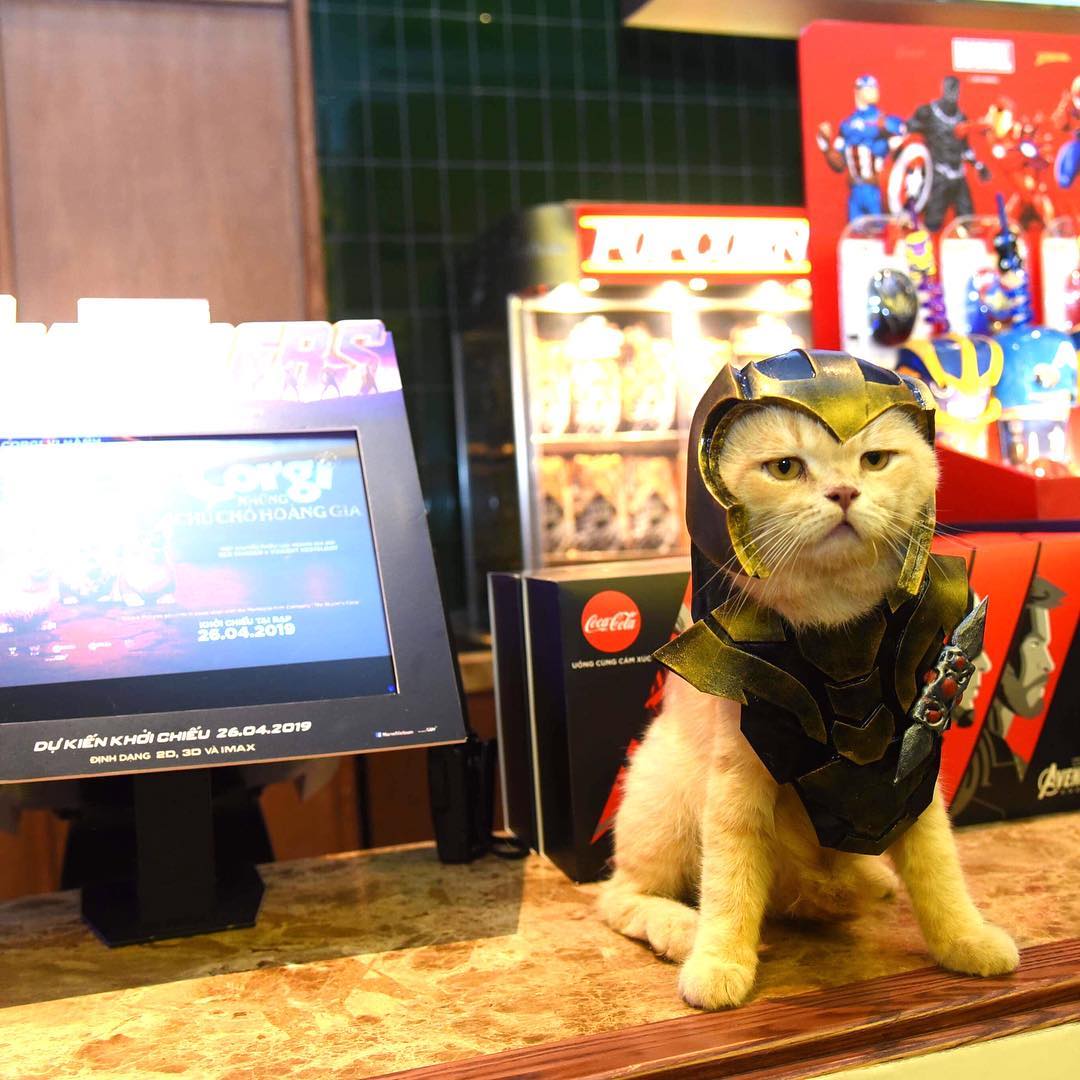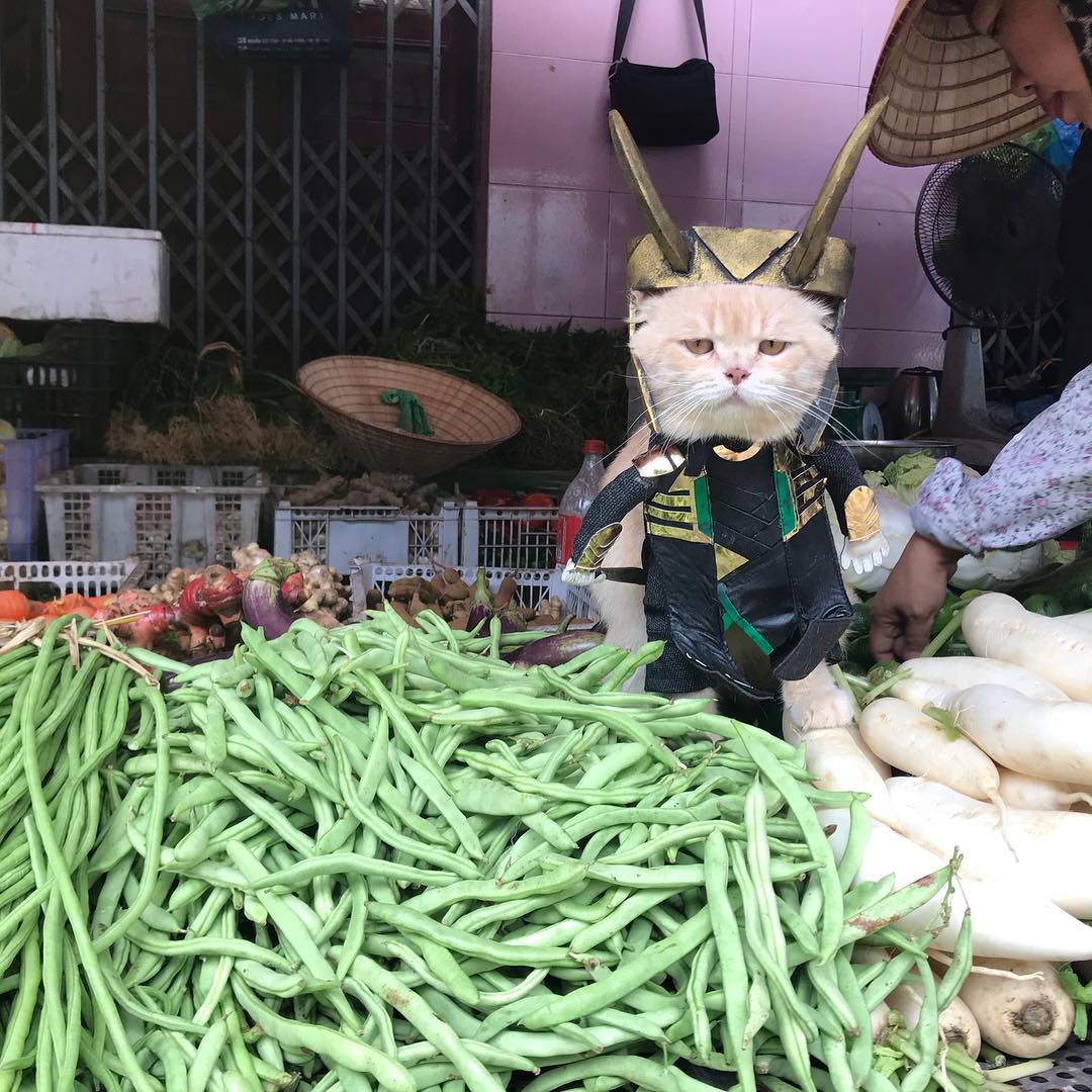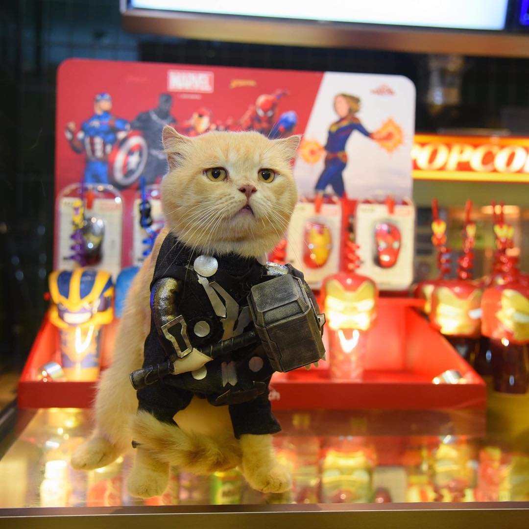 ▼Chó的主人在當地的傳統市場擺攤,可愛的Chó就是店貓,每次出現時總會以不同的裝扮出現在大家面前,在《復聯》系列電影上映之後,主人開始把Chó打扮成電影裡的各種英雄。