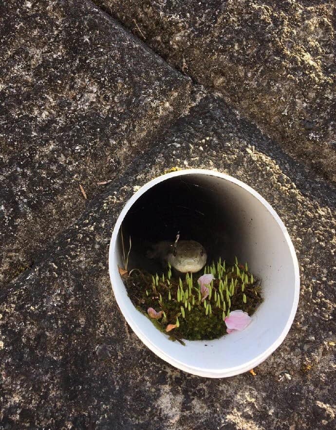 ▼鏡頭再拉近蛇的精緻小別墅看得更清楚了,門前的小植栽上散落著粉色的花瓣,還有蜘蛛網作為裝飾。整個格調清新雅緻,讓人眼前一亮。