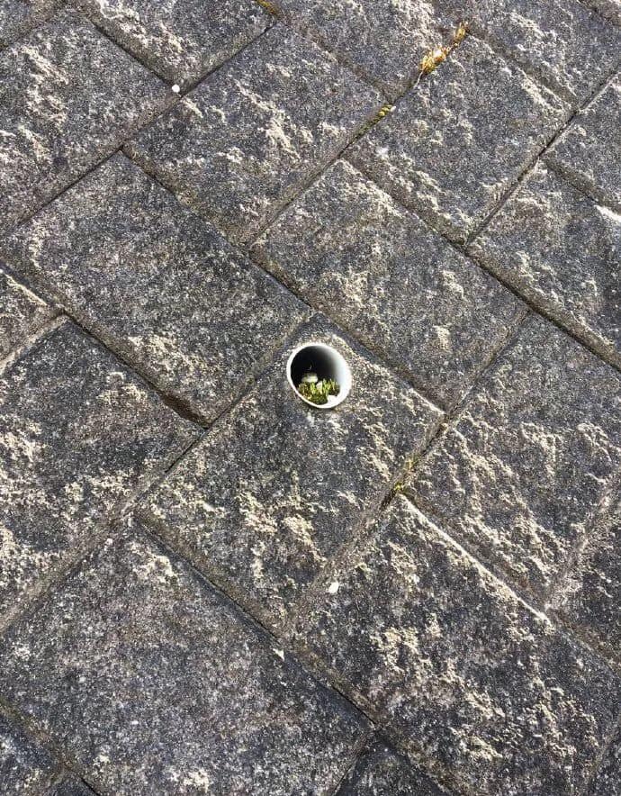 ▼網友在臉書社團「爆笑公社」PO文說「我們所不知道的地下生態」,照片中石頭牆面上有一個水管的洞口,看起來有些綠色的植物,好像還有一隻小生物。