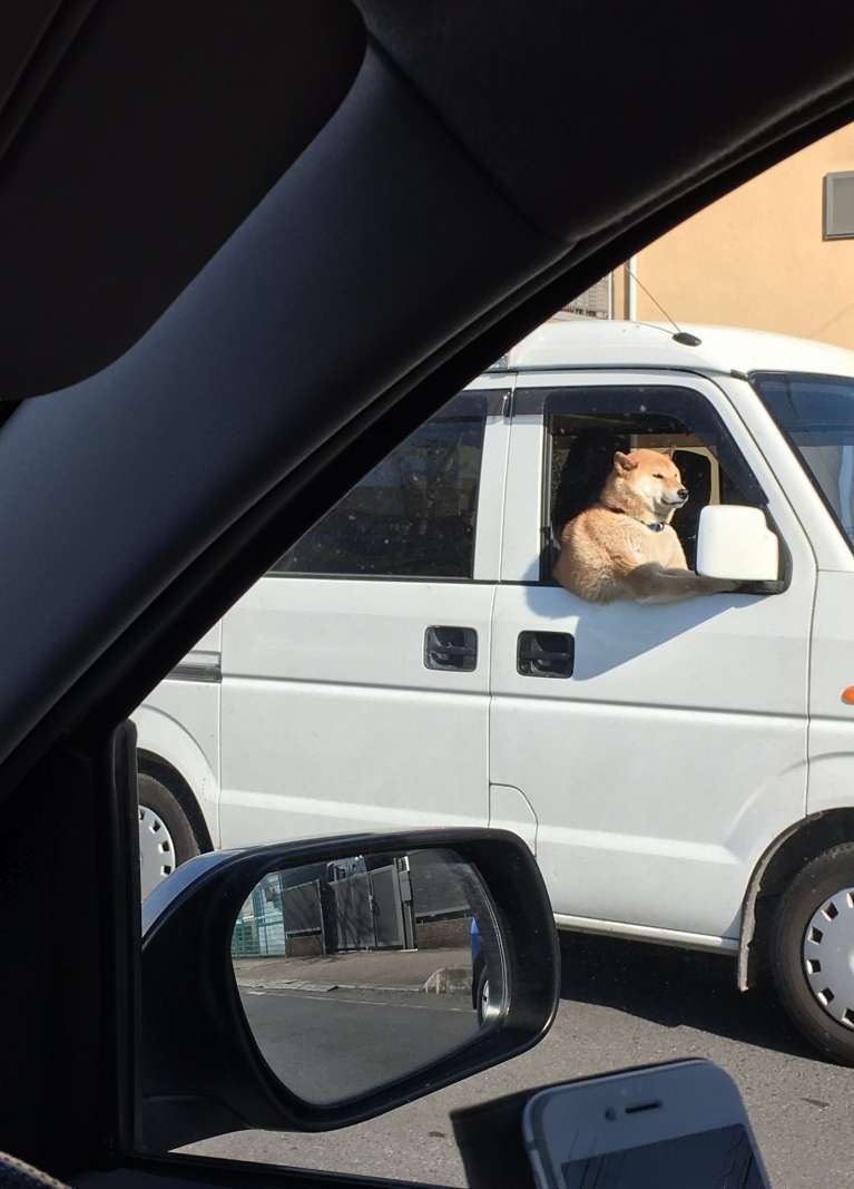 ▼這隻柴柴悠閒坐在駕駛座,眼神堅定看著前方,一隻手臂倚靠在車窗上,筋肉糾結,引人注目。