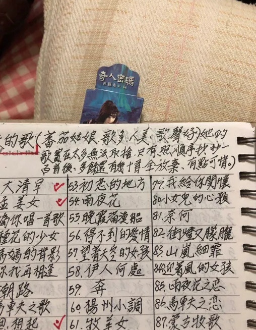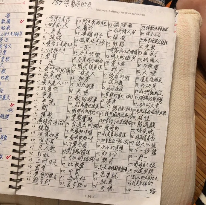 ▼爺爺甚至還會將歌手們的作品一一寫下來,看起來是不是很像 KTV 的歌單呢?