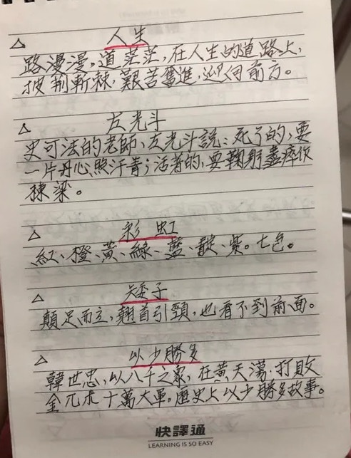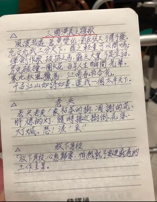 2019年06月26日想要學習新的事物,年齡從來都不應該當成藉口,活到老學到老才是正確的生活態度!近日就有一名網友在《Dcard》論壇上分享了自己80幾歲爺爺的手寫筆記,表示爺爺從小就對中文非常有興趣,即使在當兵時也會認真的看書識字。如今他雖然年事已高,每天仍然會在家裡學習各種不同領域的知識,還會將這些資料用手寫的方式記錄下來。原po將這些筆記用拍照的方式分享出來後,整齊和條理分明的筆記讓許多網友都自愧不如!