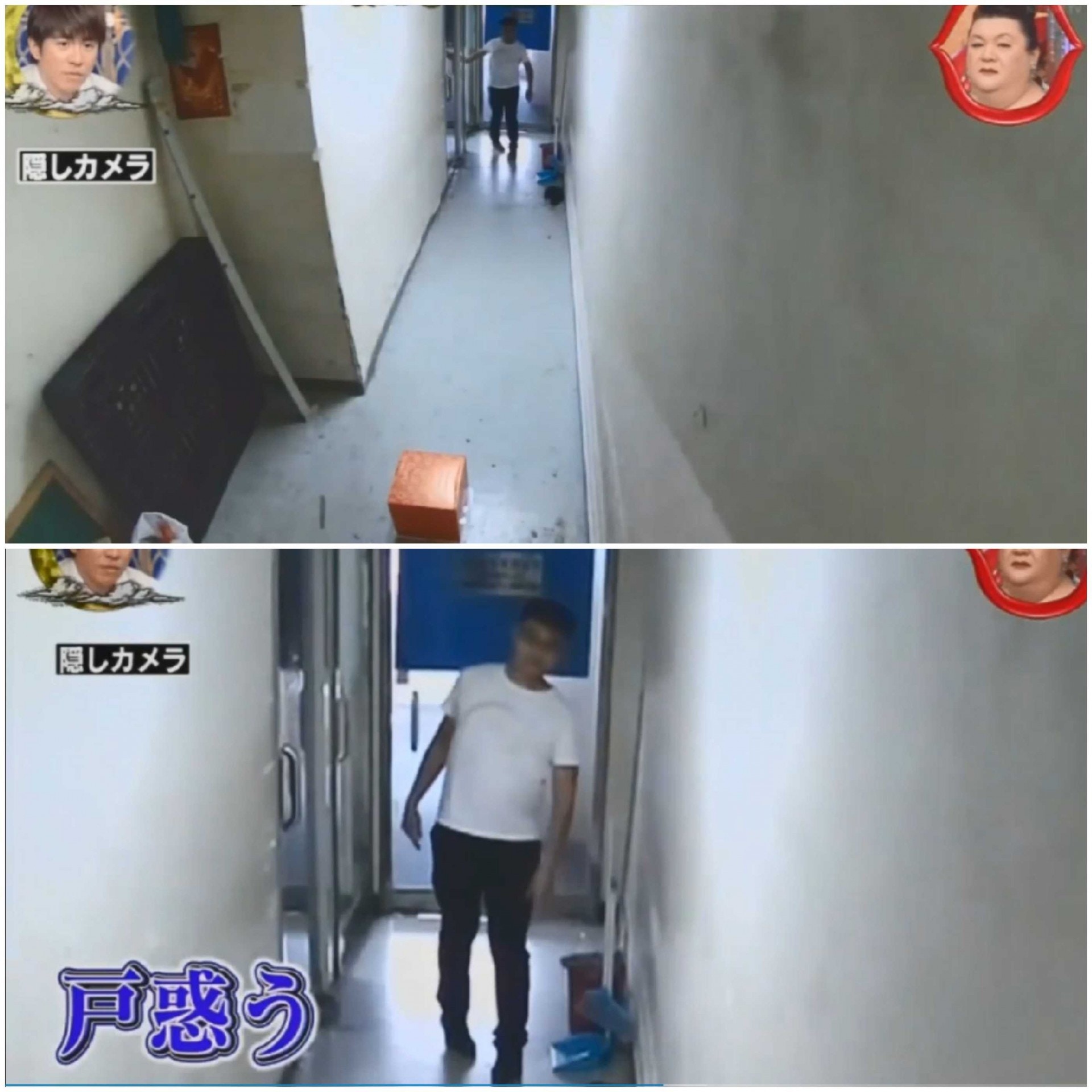 ▼男生果然注意到了走廊上的盒子,他非常疑惑,到處張望。