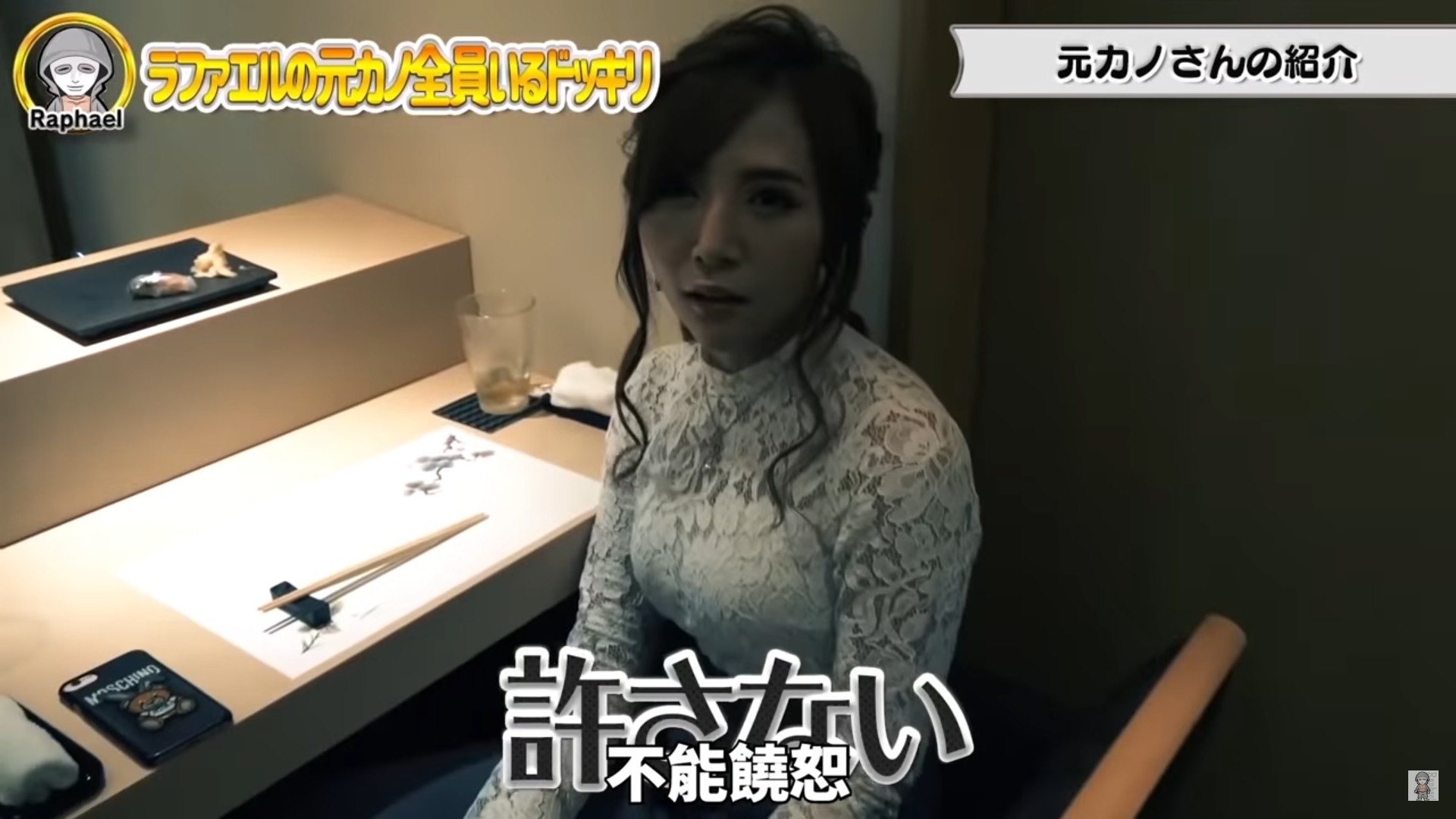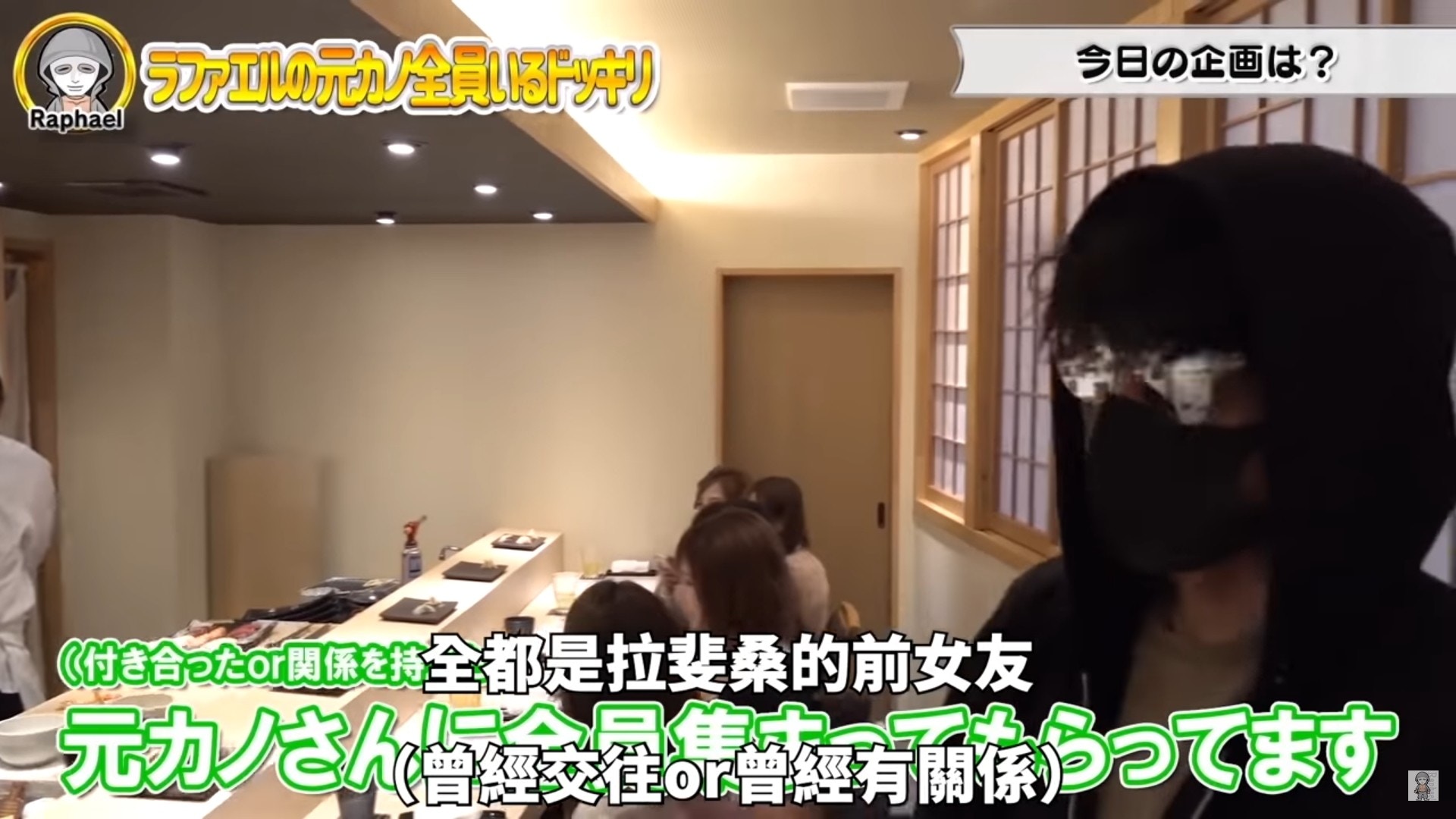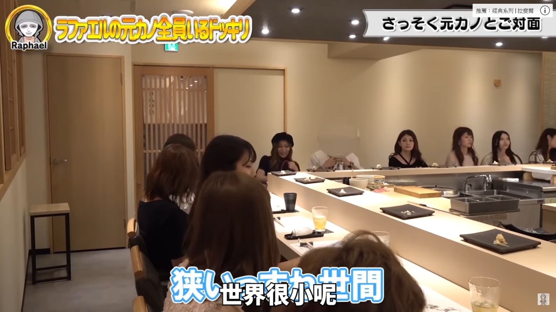 ▼拉斐爾的拍攝夥伴為了吸引點閱率,想出了這個令人超尷尬的企劃,安排了多位曾經與拉斐爾交往過的前女友來到這家餐廳,等待拉斐爾帶著現任女友出現在這家高級壽司店,想要看他會如何應對這史詩級的尷尬場面!