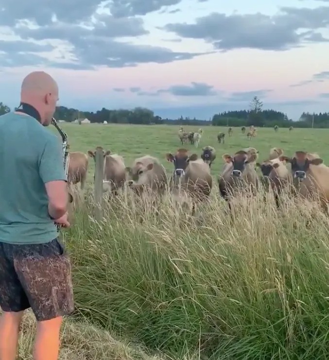 暖男對牛吹薩克斯風「牛牛衝過來圍觀」 網笑:牠們也會聽音樂