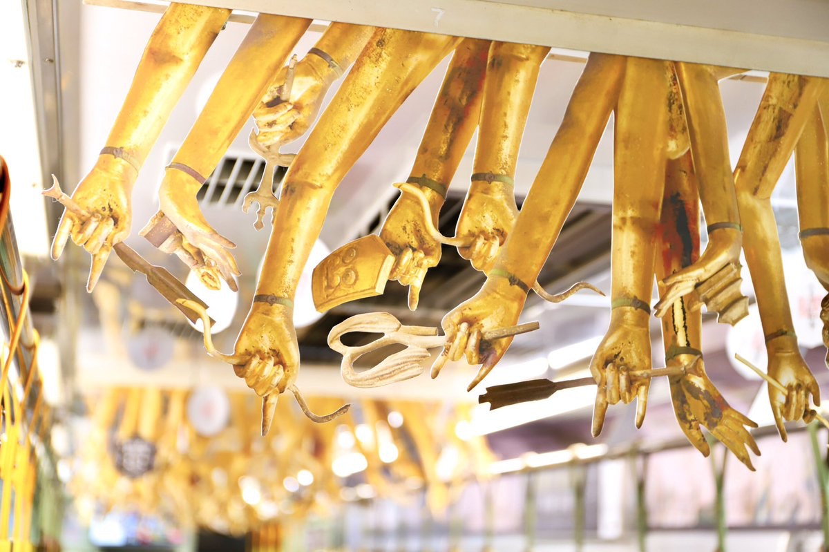 ▼而天花板上懸掛的廣告,也全都被畫成了千手觀音的裝飾,讓人乍看之下就像是千手觀音顯靈一樣!