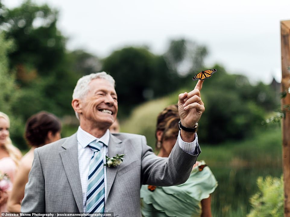 ▼新郎Max Van Gorder一家一直堅信,人往生後會化作蝴蝶回來探望親人。所以他們特別準備了一些蝴蝶,想在婚禮上放飛。