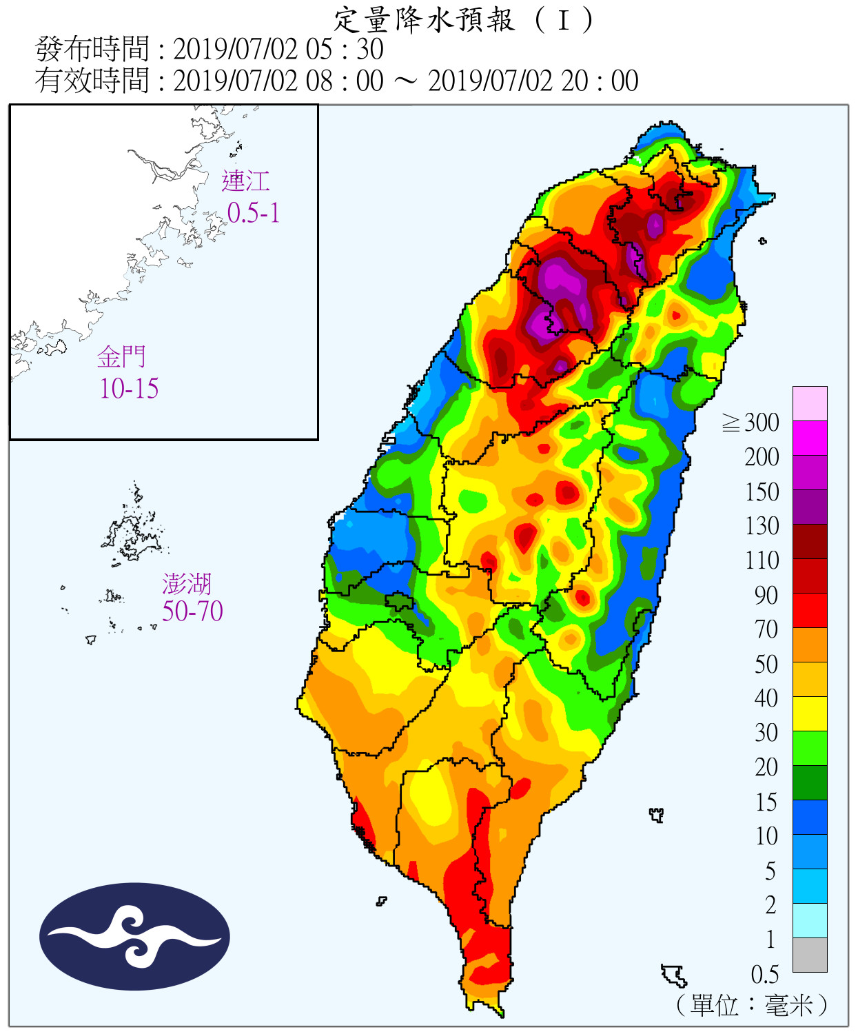 ▼氣象局也預測,7月2日晚上開始將全台有雨,狀況會維持到7月3日早晨8點。