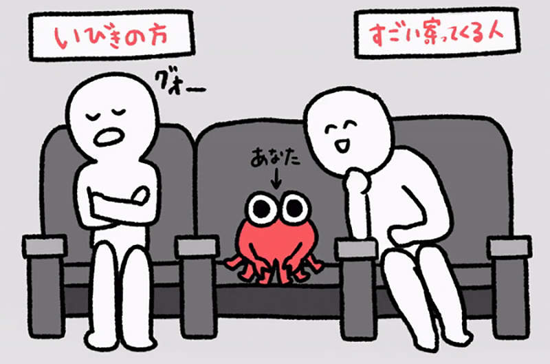 ▼「佔據扶手的人」與「打呼的人」。