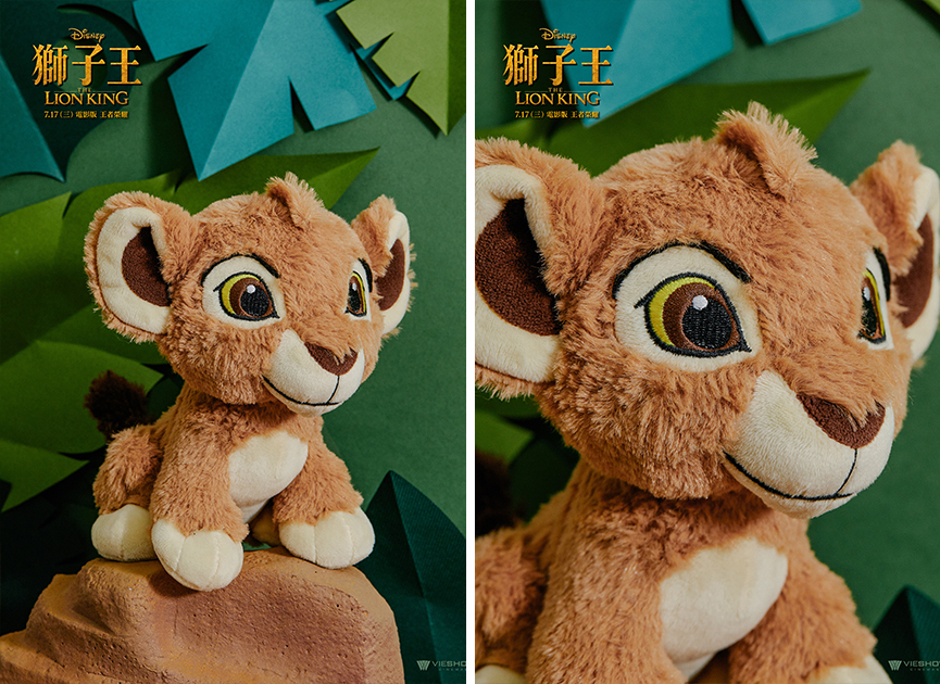 ▼雖然電影裡角色形象較接近現實生活中動物的形象,但電影版的玩偶萌出新高度。「辛巴」採用長毛的毛絨、摸起來很舒服,還有還有一雙大大的刺繡眼睛。