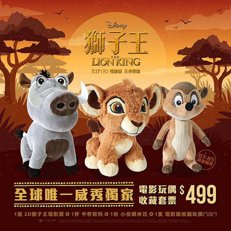軟Q版辛巴、澎澎、丁滿玩偶超稀有 威秀影城《獅子王》套票限量推出