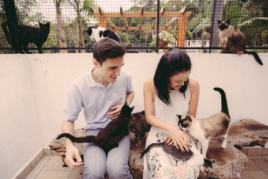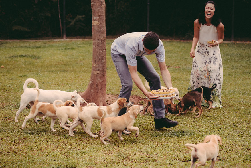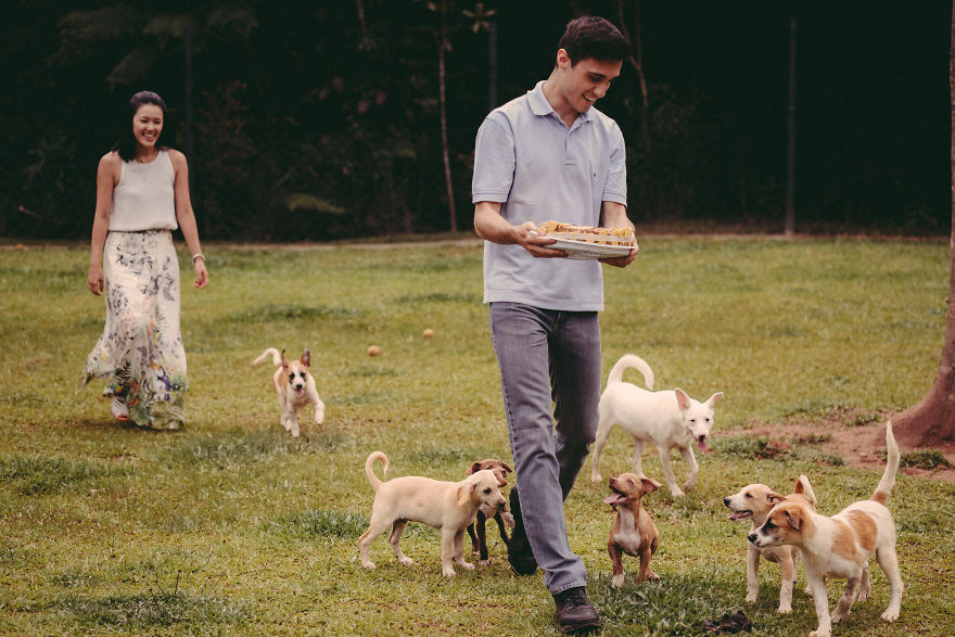 2019年07月03日在西方國家的習俗當中,他們只有在婚禮當天才會穿上婚紗,因此他們除了婚禮當天的婚紗照以外,在結婚前還會先拍一些所謂的「訂婚照」。國外就有一對情侶因為很不喜歡擺出生硬的姿勢和動作來紀念這一天,於是想出了來到動物收容所,在動物們的圍繞下拍出最有愛的照片!