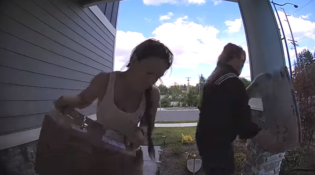 ▼當時兩位女子走到他的家門口,將門口放著的包裹全都搬走了。