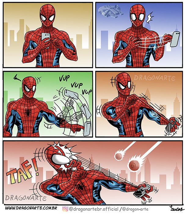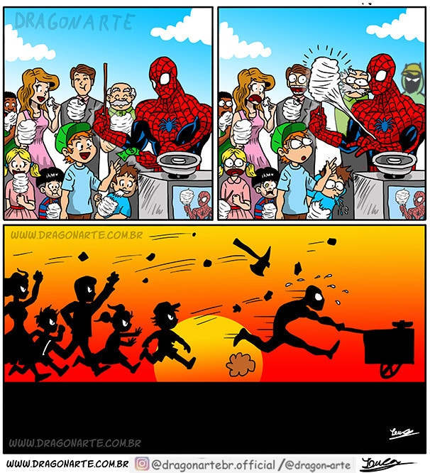 2019年07月04日之前《復仇者聯盟4:終局之戰》在全球掀起觀影熱潮,如今《蜘蛛人:離家日》又來啦。這可是MUC輝煌11年的階段性完結篇,粉絲們千萬不要錯過。國外藝術家Lucas Nascimento很擅長創作以超級英雄為主題的插畫,一起看看他腦洞大開的「蜘蛛人貧窮生活日常」吧。