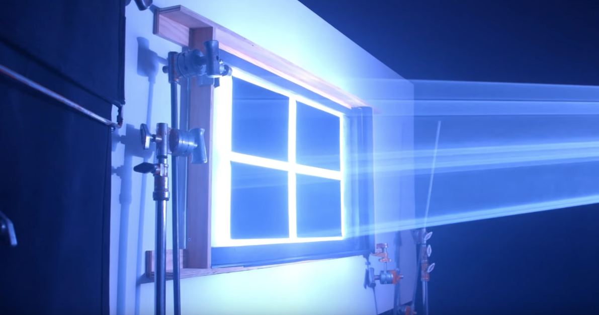 ▼強光會直接照射在四方格框架,然後再製造出一些煙霧。