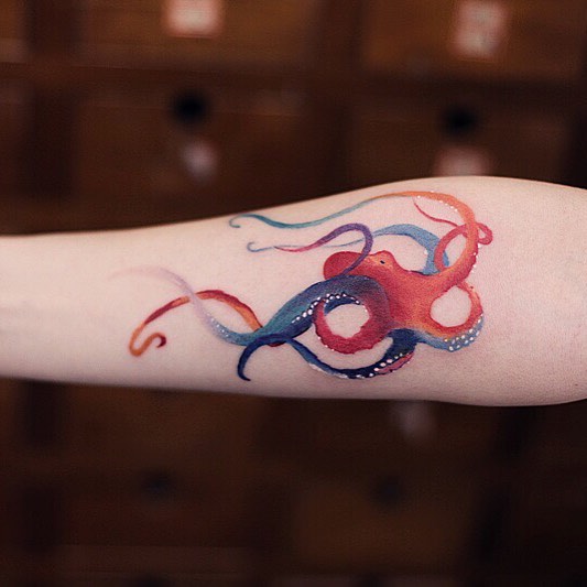 ▼陳潔風格多變,這種可愛的刺青也是信手拈來。原本就很可愛的動物加入水墨畫的效果,顯得很有質感。