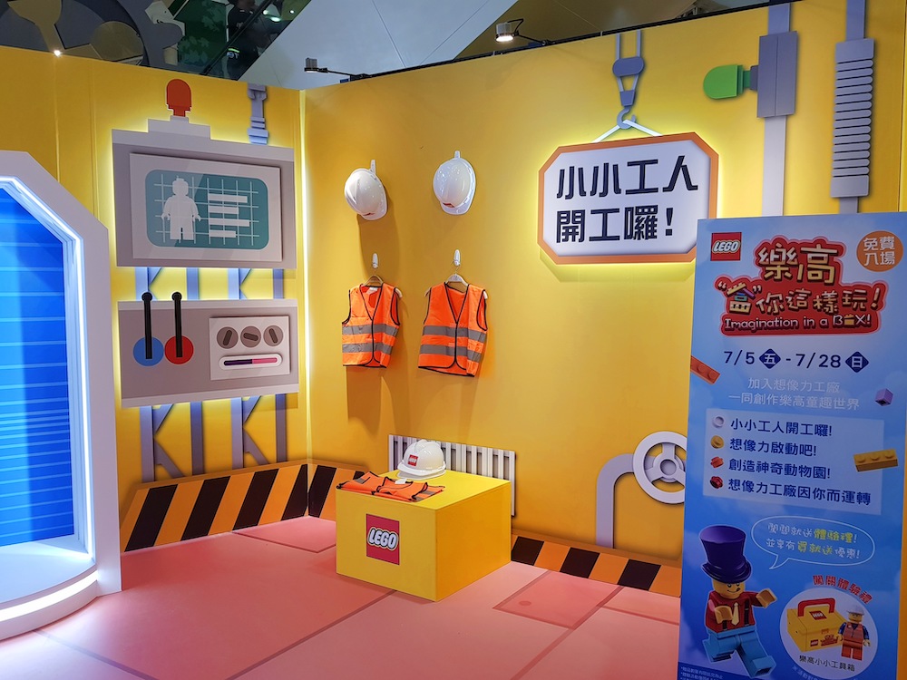 ▼於高雄夢時代購物中心建造專屬樂高的想像力工廠,從安全檢查到成品輸送帶,運用四大關卡讓小朋友成為樂高小小工人,啟發小朋友的創造力,完成體驗就能將個人專屬工作證書與人偶帶回家留念。
