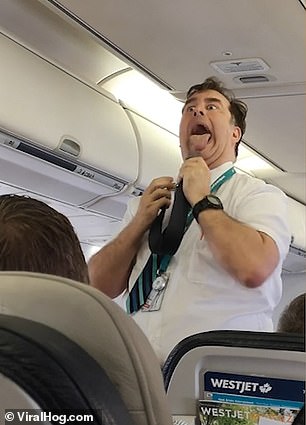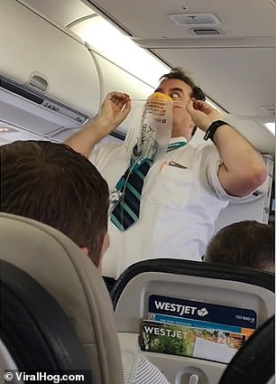 2019年07月05日飛機準備起飛時,空服員會講解安全帶和氧氣面罩的使用方法。大部分空服員演示時都很嚴肅,雖然乘客們知道安全守則很重要,但真的沒耐心看他們一本正經的講解。加拿大西捷航空(Westjet)的一名空服員用特別的方法吸引大家的關注,他搞笑的表演把乘客們逗得哈哈大笑,也讓人印象深刻。