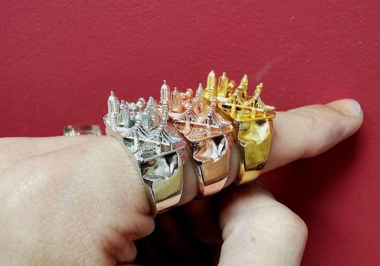 2019年07月08日戒指給大家的印象多數是有鑽石在上面才顯得珍貴,但是下面這個「城市戒指」卻讓大家都忍不住想多看幾眼,細細欣賞超精細的做工!來自「Art is Therapy」的設計師利用神創意和技術,完美地把一座城市的地標和著名景點都放進一個戒指裡,讓你在秀出戒指的瞬間,所有人都會發出讚嘆聲!