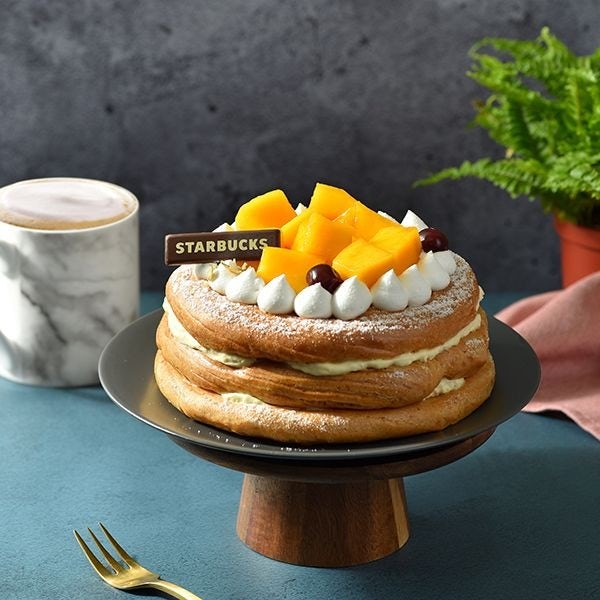 ▼此外,如果父親節蛋糕還沒決定的話,星巴克現在也推出88折訂購優惠哦!主打的「六吋芒果泡芙」有卡士達內餡,上面則是新鮮芒果和蔓越梅,肯定是一家大小都會愛的口味!