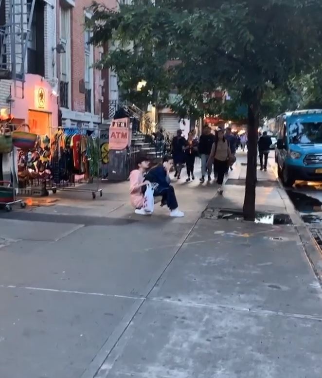 ▼這對情侶大喇喇蹲坐在路中央曬恩愛,路過的人忍不住看他們幾眼,他們卻不以為意,繼續做自己的事。
