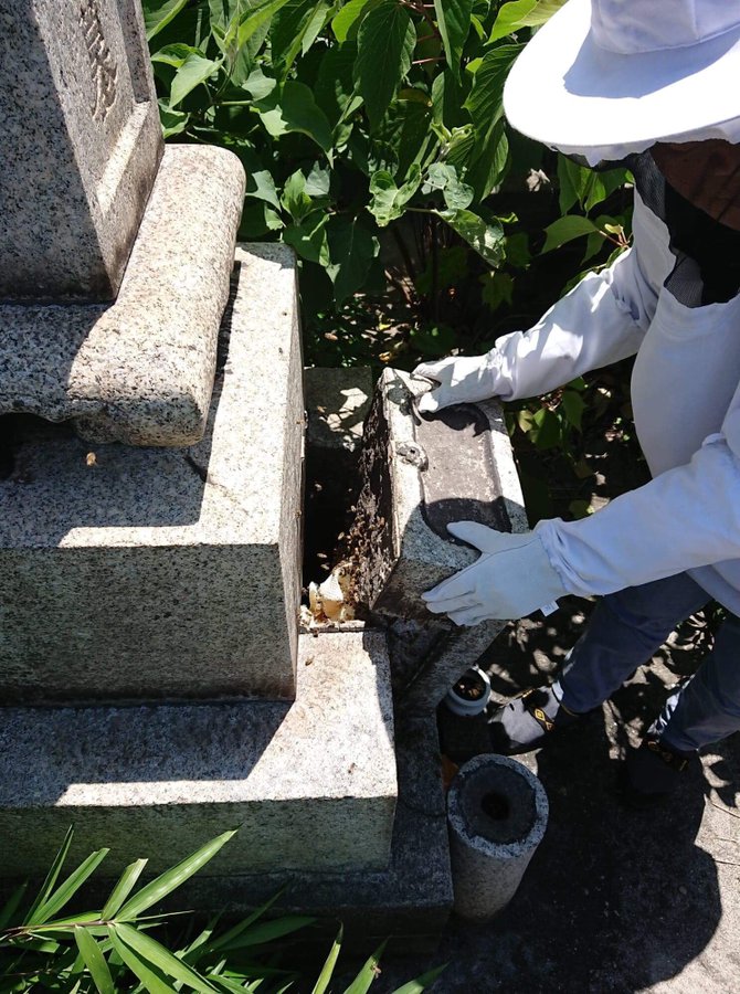 2019年07月08日日本一處寺廟的墓園近來有大量蜜蜂出沒,讓參拜的人不堪其擾,紛紛向該寺廟住持上報,希望住持能夠解決。但住持畢竟是和尚、不是蜜蜂系的專業人士,在接到一連串投訴卻又無可奈何的情況下,只好上推特訴苦,引來養蜂專家注意、要為他解決問題,沒想到竟然挖出罕見「乳白色蜂巢」!