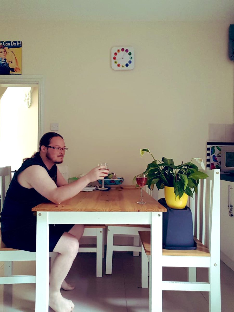 ▼Lauren在美國玩得正開心,突然收到Jack傳來的照片。照片中的Jack將白鶴芋放在餐桌前,並在它面前擺了一杯酒。Jack與白鶴芋相對而坐,一人一植物氣氛融洽。
