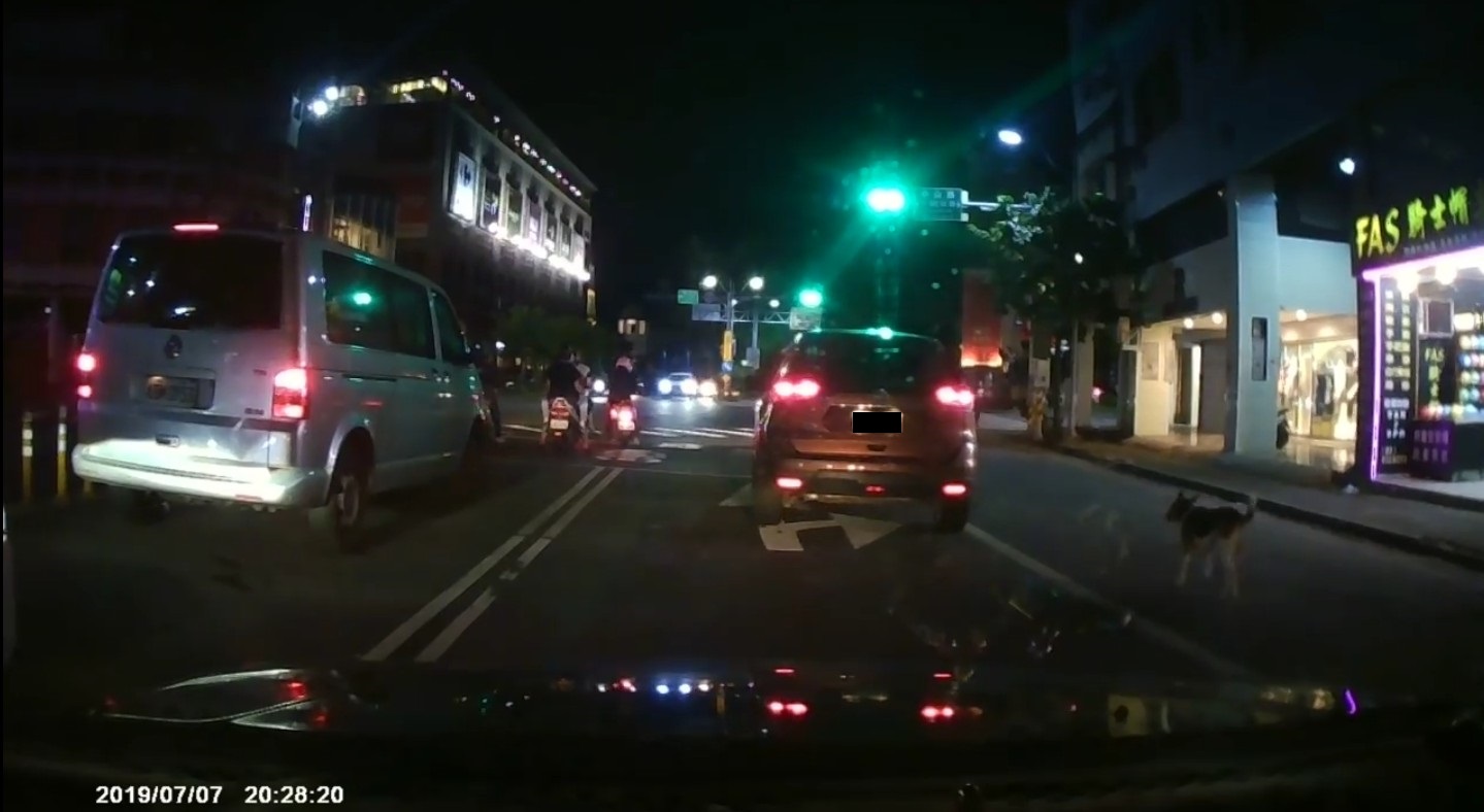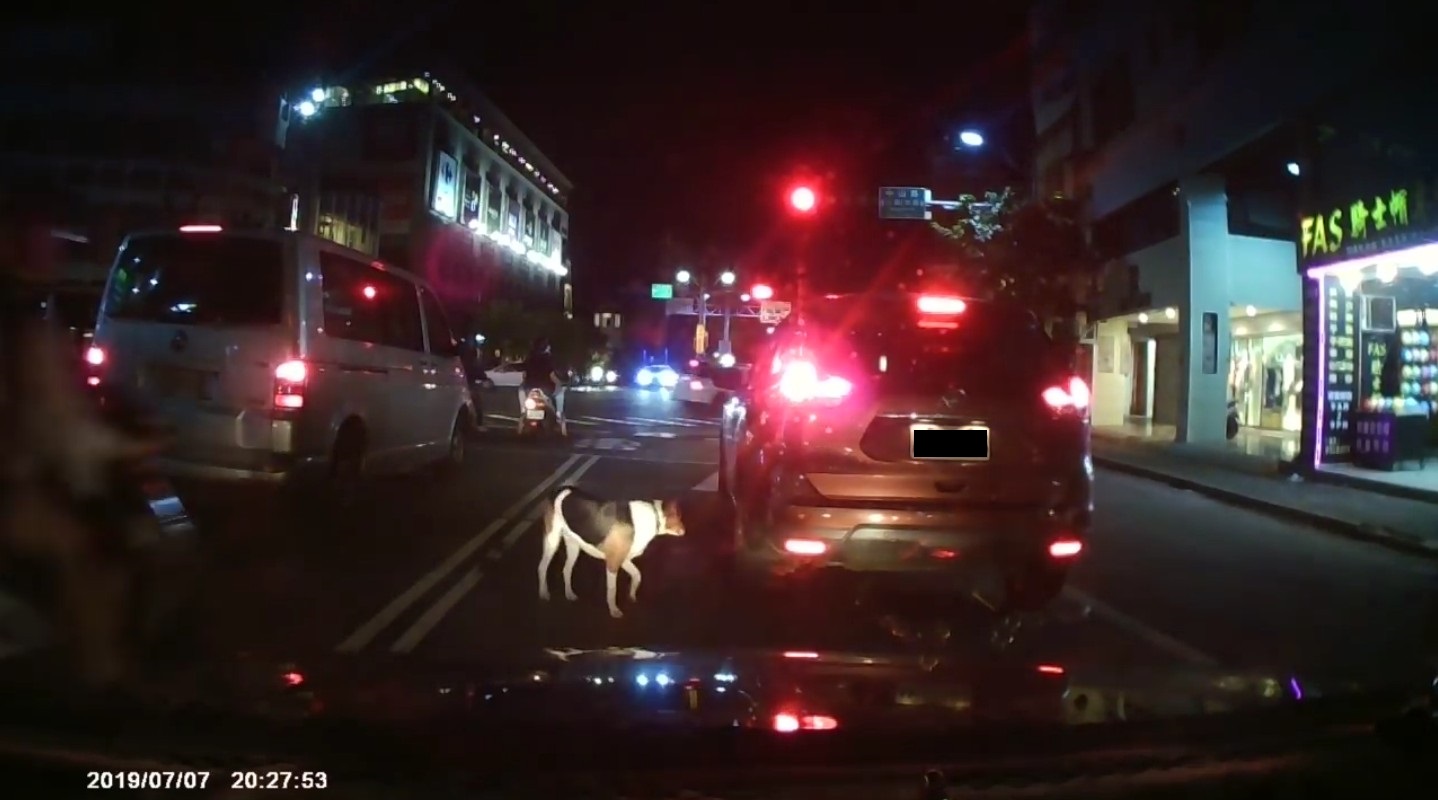 ▼可以看到當時車子都在等待紅燈,前方的休旅車突然打開了車門,將一隻米克斯趕下了車。
