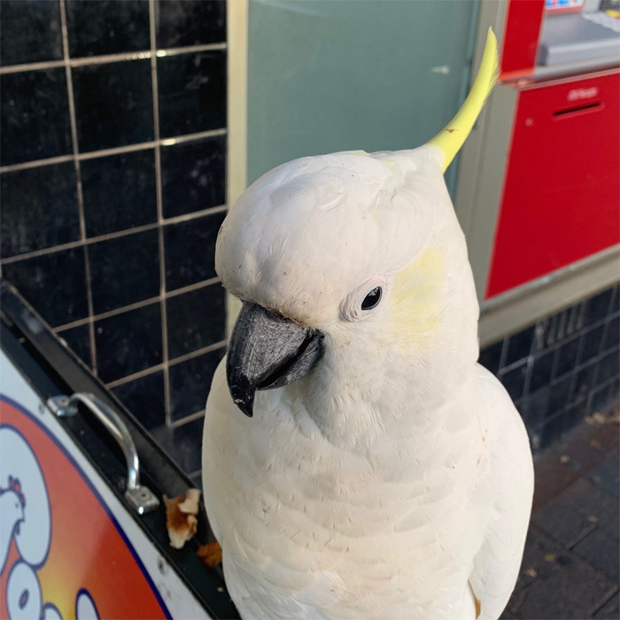 ▼那天Isaac走在街上,感覺頭頂有什麼東西不斷掉下來。他抬頭去看,這才發現那裡有一隻鳳頭鸚鵡。