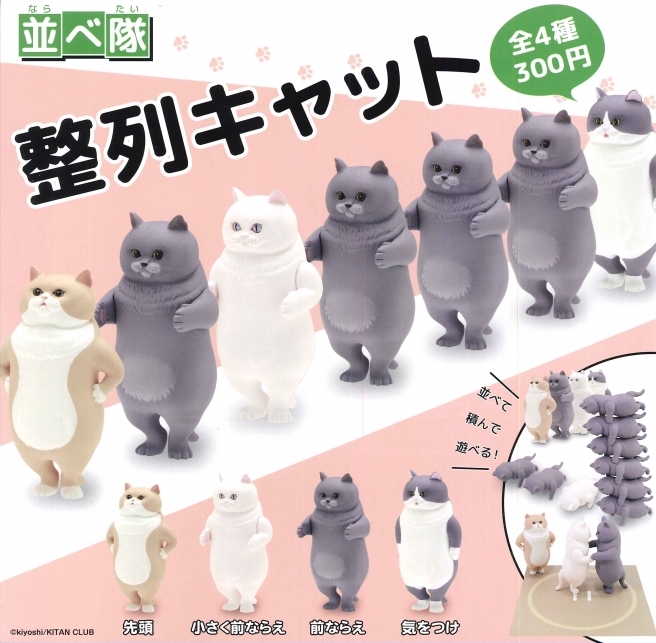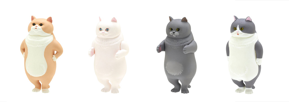 ▼這款貓咪身材圓潤(還有雙下巴),站著時有種吃力感,此外竟然有三種不同手勢,並排在一起看起來還真是個有模有樣的列隊,也因為如此雖然僅有四種樣式,但即便款式重複,看起來也像是個聲勢浩大的貓咪遊行,超級可愛~~