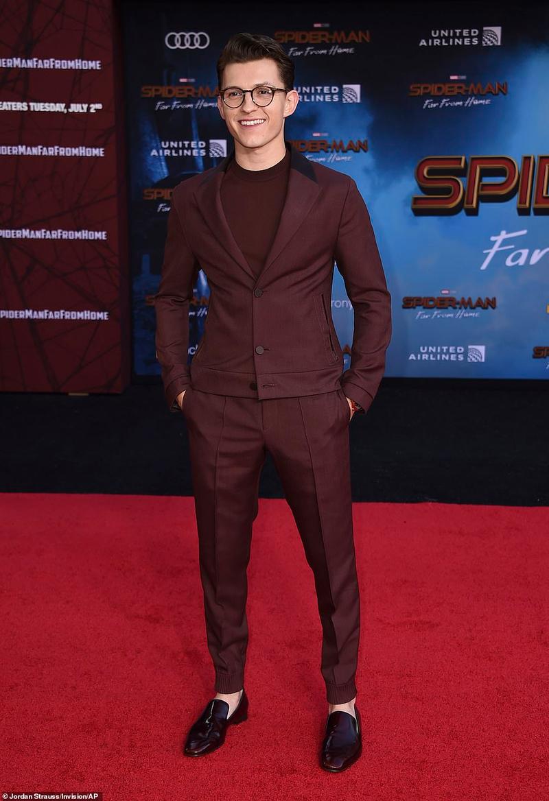 ▼在首映會上,「小蜘蛛」湯姆荷蘭(Tom Holland)身穿酒紅色西裝,還戴上了眼鏡。這一造型讓人馬上想到「鋼鐵人」東尼史塔克(Tony Stark),兩人不愧是父子啊。