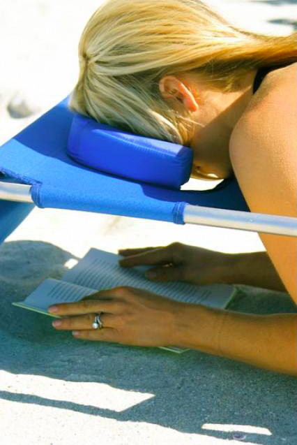 ▼這款沙灘椅不只是可以讓你平躺,而是連趴著也可以很舒服,然後閱讀也沒問題!
