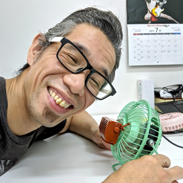 ▼這台空調不會自己吹冷氣,而是要搭配風扇使用。將它夾在風扇上,就能感受到涼涼的風。