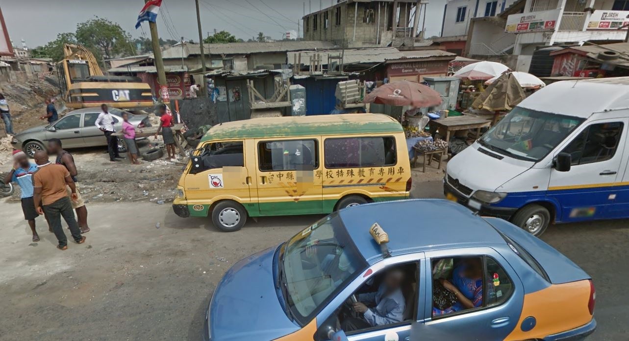▼網友在滑Google街景圖時,注意到非洲迦納首都「阿克拉」有一輛台灣的娃娃車,熟悉的黃色車身上還印著「台中縣XX學校特別教育專用車」,而台中縣更是在2009年就已經廢止的行政區。