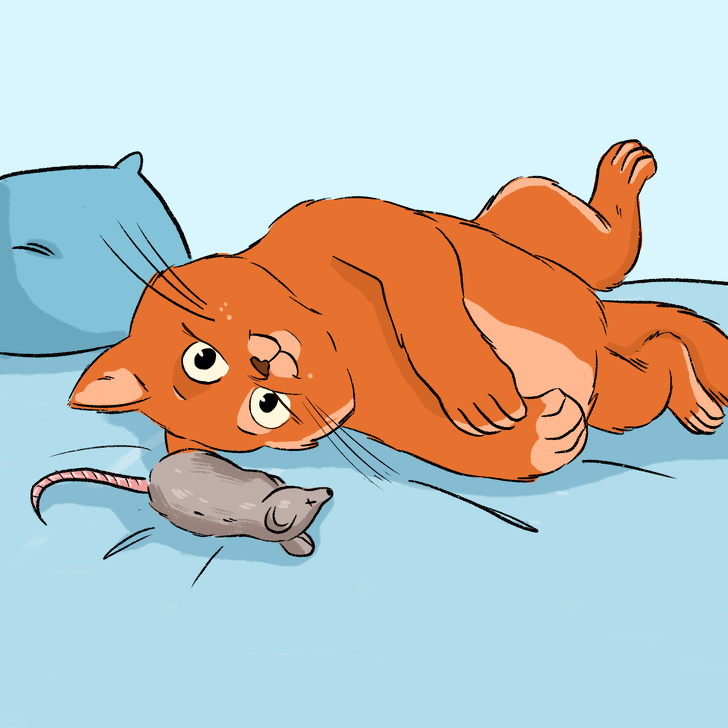 ▼7. 你的貓會擔心你會不會餓,所以如果牠下次帶隻老鼠來…請接受牠的好意收下。