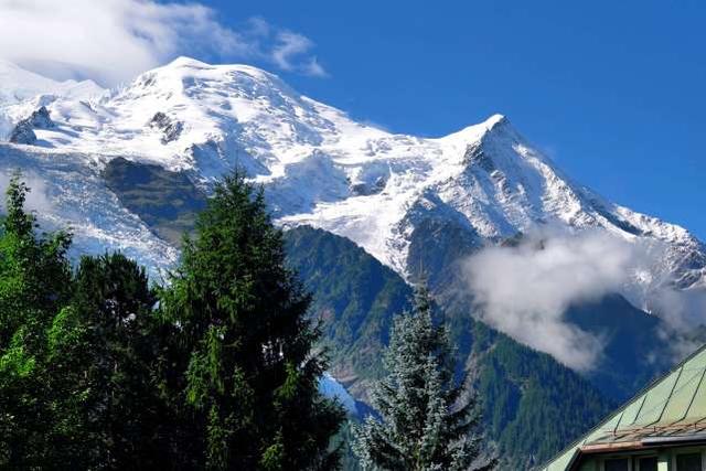▼勃朗峰的峰頂永遠都覆蓋著厚實的冰雪,從遠方看起來簡直就像是人間仙境!