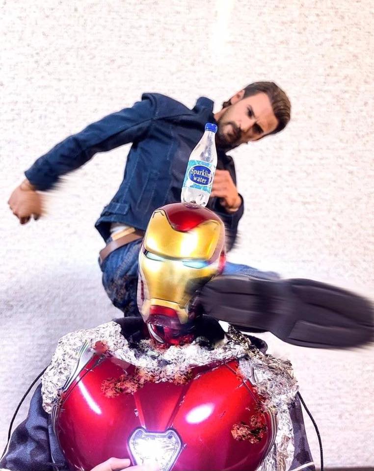 2019年07月18日日本推特上一名網友オモ太郎(@marvel_crew)有很強的幽默感,身為漫威粉絲的他當然有很多超級英雄的公仔收藏,平時也會拿來玩~最近一次他創作的「微劇場」就跟風做了「踢瓶蓋挑戰」,結果鋼鐵人和美國隊長的互動讓大家笑到流眼淚!