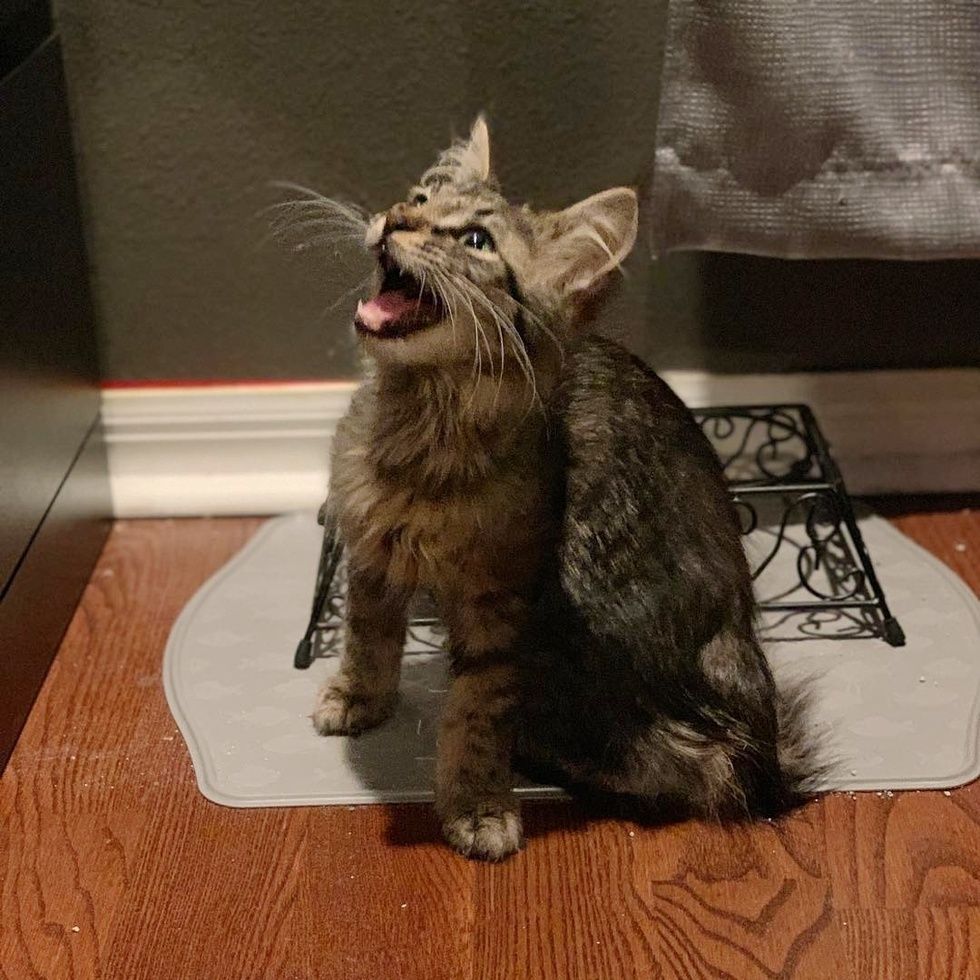 ▼這隻貓咪差不多3個半月大,體重卻只有1.3kg,顯然受了很多苦。Kiara給牠取名為Hope,因為牠在絕望中看到希望,找到了她,也找到了家。