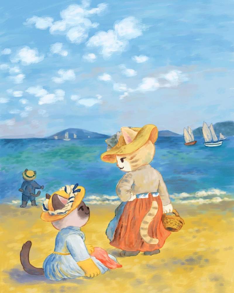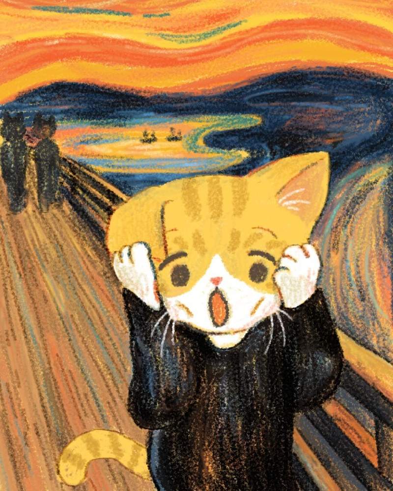 名畫中的人物都變成了萌萌的貓咪,畫的氛圍都改變了。想看更多융잡화점(@yoong7)的作品,就去追蹤一下她的Instagram吧。