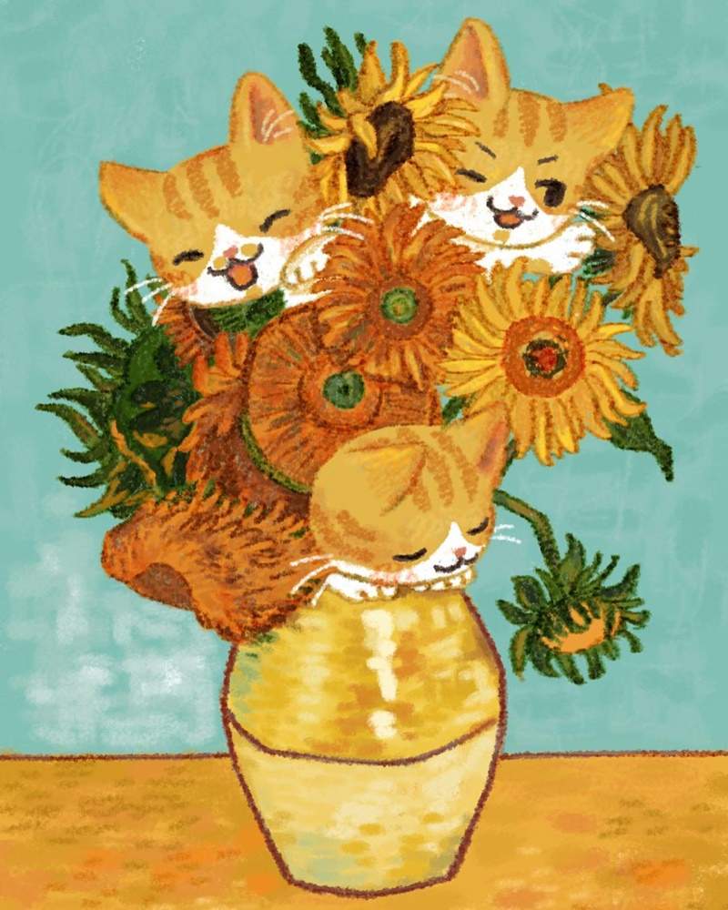 世界名畫「置入貓貓」馬上萌到翻 梵谷畫作「向日葵喵」貓奴絕對心動❤