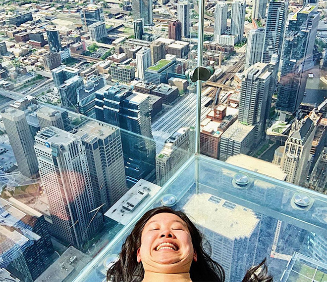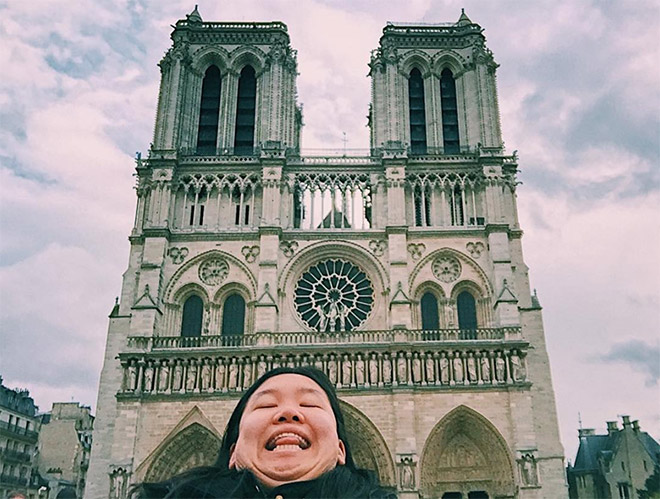 ▼Michelle到世界各地旅行,來到著名的景點,她不會拗造型拍美照,而是故意後仰、低頭,擠出雙下巴,然後拍出一張張醜照。