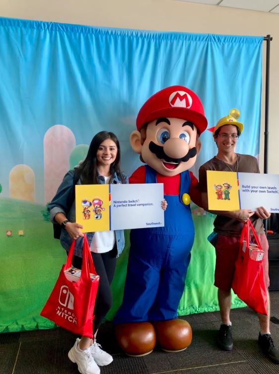 ▼日前潔西卡和他的朋友搭乘美國西南航空從達拉斯(Dallas)前往聖地亞哥動漫展(San Diego Comic-Con)的航班,潔西卡一群人人剛好搭上與任天堂合作的航班,在登機前地勤人員都是戴著《超級馬力歐創作家》的帽子,還偷偷跟他們說「還有神祕驚喜等著你們」!
