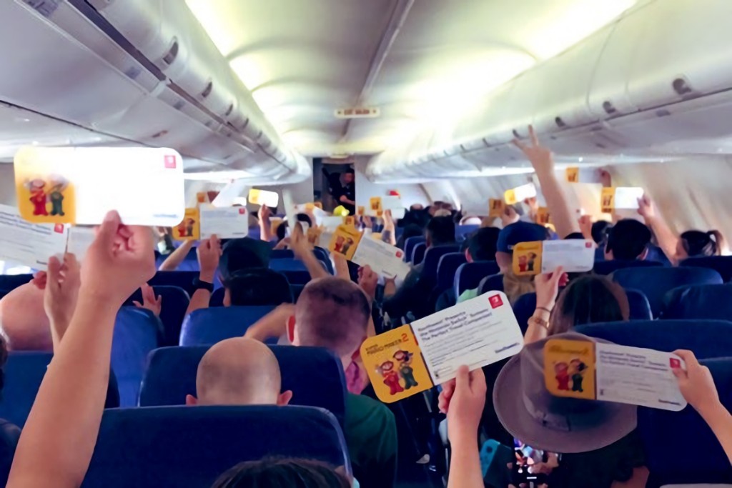 ▼你以為這句話只是普通的廣告宣傳台詞嗎?那你就錯了!上了飛機後,機組人員便宣布這個航班是西南航空與任天堂合作的「驚喜航班」,所有旅客都能直接免費獲得一台任天堂贈送的「Nintenddo Switch」(市價新台幣9780元),以及遊戲《超級瑪利歐創作家2》(市價新台幣1690元),突如其來的喜訊,讓整台飛機的乘客開心到合不起嘴!