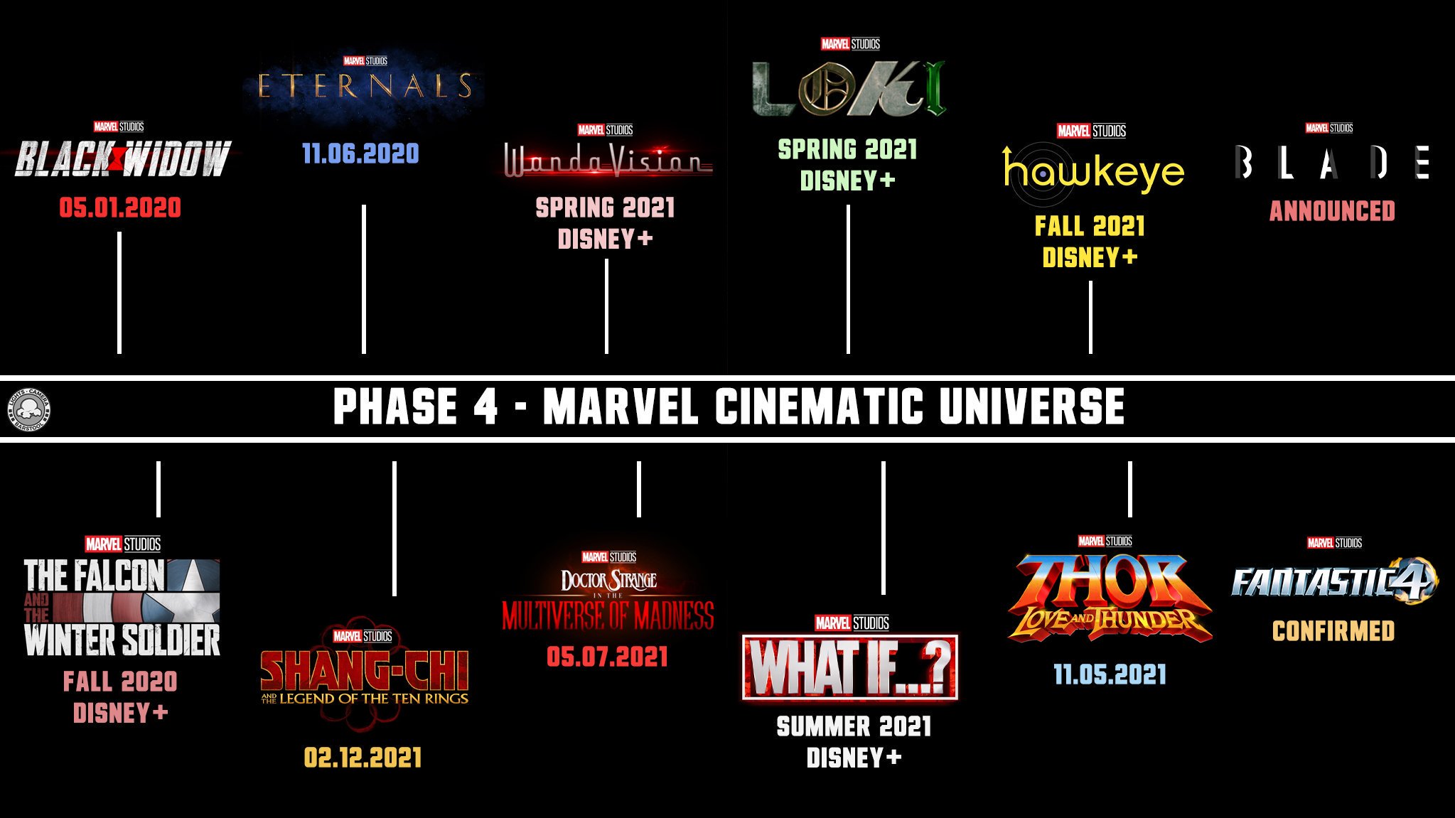 2019年07月24日隨著《復仇者聯盟4:終局之戰》和《蜘蛛人:離家日》的上映,意味著漫威電影宇宙的前三個階段已經告一段落。許多粉絲已經開始期待漫威在第四階段(Phase 4)會有怎樣的安排,如今漫威終於在今年的聖地牙哥動漫展(SDCC)給出了第四階段作品的時間表,當中包括了多部續集電影和全新影集,還有從福斯手上收購回來的驚奇四超人與X戰警,看來第四階段還是非常值得期待的!讓我們來看看之後漫威宇宙即將上映的電影和影集吧: