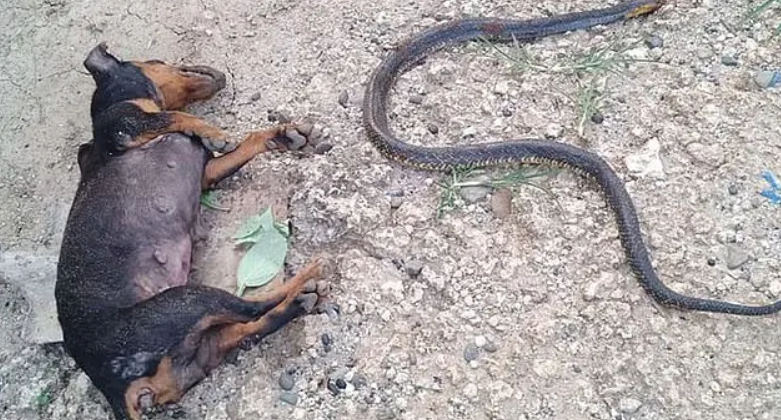 ▼就算被咬到,Miley和Moxie都不退縮,只要看到眼鏡蛇靠近家門口就馬上咬住牠!