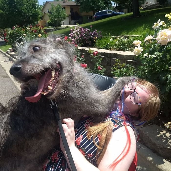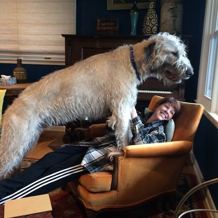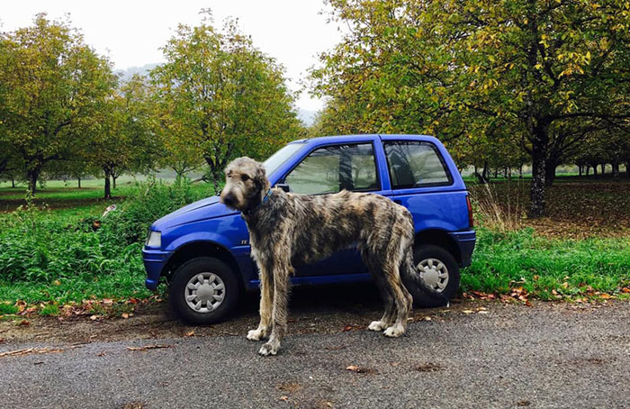 ▼愛爾蘭獵狼犬的體型,幾乎快要比得上一輛小汽車了。