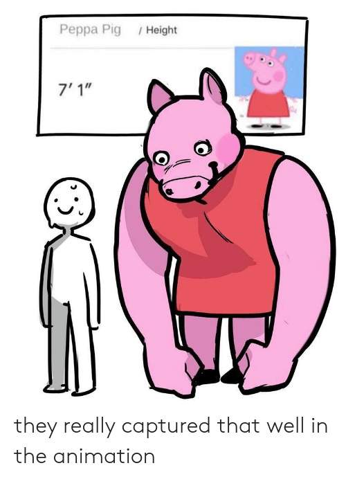 天啊…原來為了照顧小孩的感受,卡通都選擇不完全還原佩佩豬的身高…畢竟哪個小孩會喜歡看長得超巨大一隻的佩佩豬嘛!