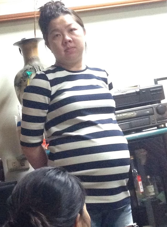 ▼懷孕時期的身體四肢都超有肉,連臉部也腫得看不到眼睛!
