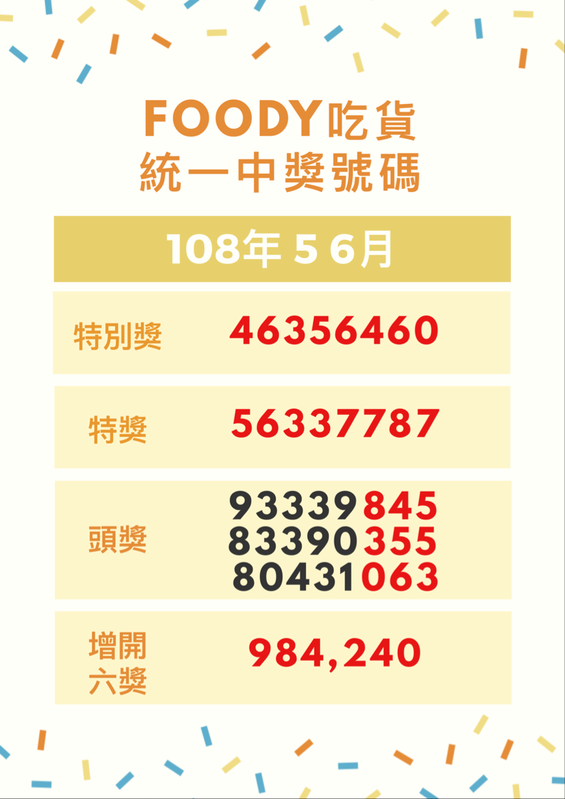 ▼今年的中獎號碼如下,實際中獎號碼以財政部公告為主,趕快把發票拿出來對一對吧!