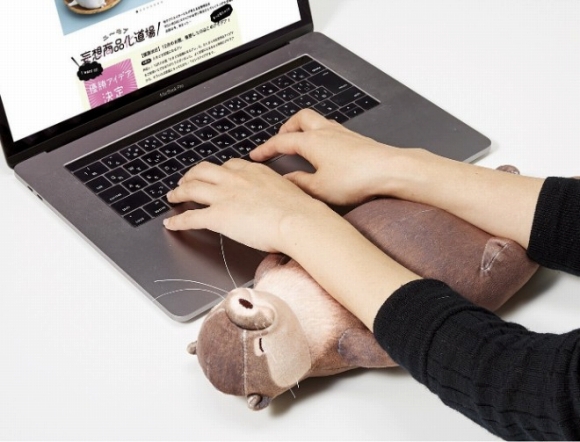 ▼它看起來像一個水獺造型的玩偶,其實是一個化妝包,肚子裡可以裝很多小物。這款化妝包完美還原水獺的呆萌睡姿,連肉球捏起來都很Q彈。它還有一個特別的功能,那就是放在鍵盤前當靠手用的小軟墊,真是辦公室必備的療癒小物。